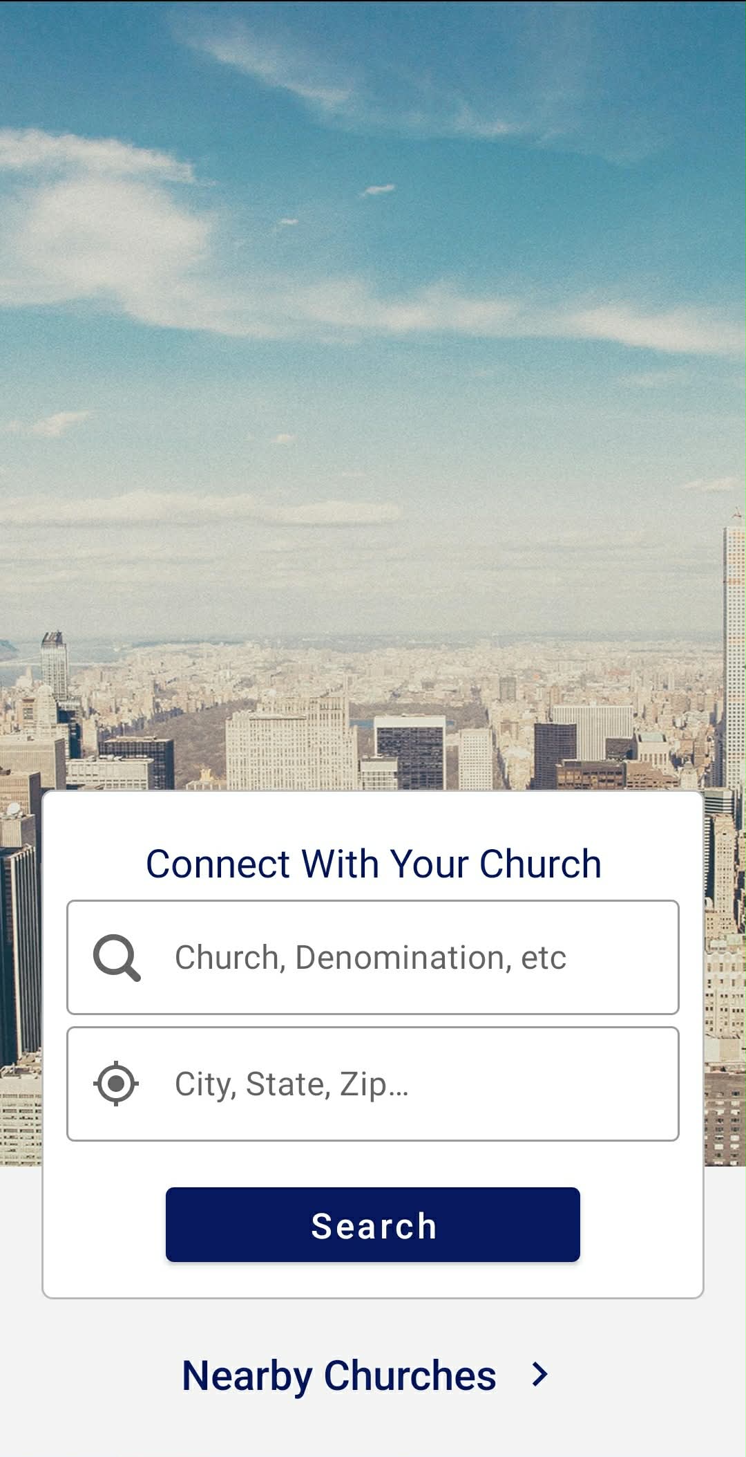 - You will see a screen asking you to connect with your church